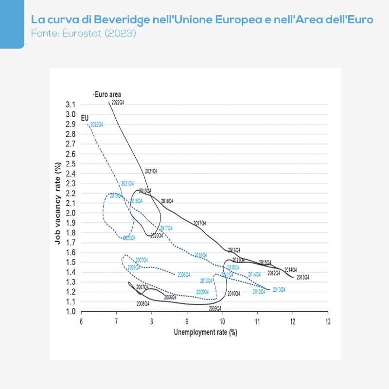 (5) Eurostat, Job vacancy and unemployment rates – Beveridge curve, Eurostat Statistics Explained, dati estratti nel mese di giugno 2023.